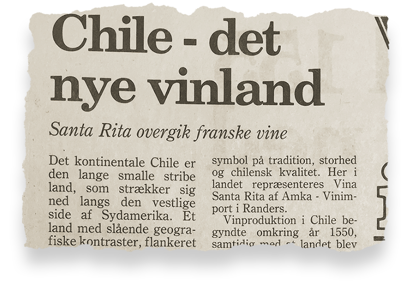 The company really took off in 1987, when AMKA introduced the first Chilean wine on the Danish market. When the purchasing department tasted wine from the Chilean winery Santa Rita for the first time, they were blown away.
