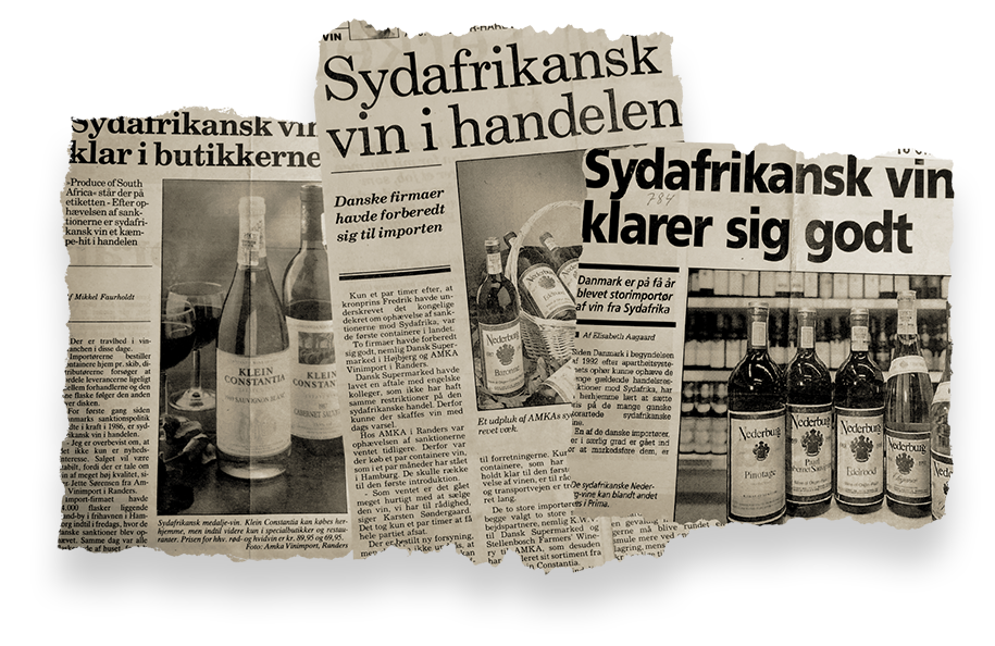 In March 1992 the trade restrictions caused by apartheid was cancelled, and it became legal to trade with South Africa again. Until then South Africa was the only producer in the world of quality wines, which was not represented on the Danish market.